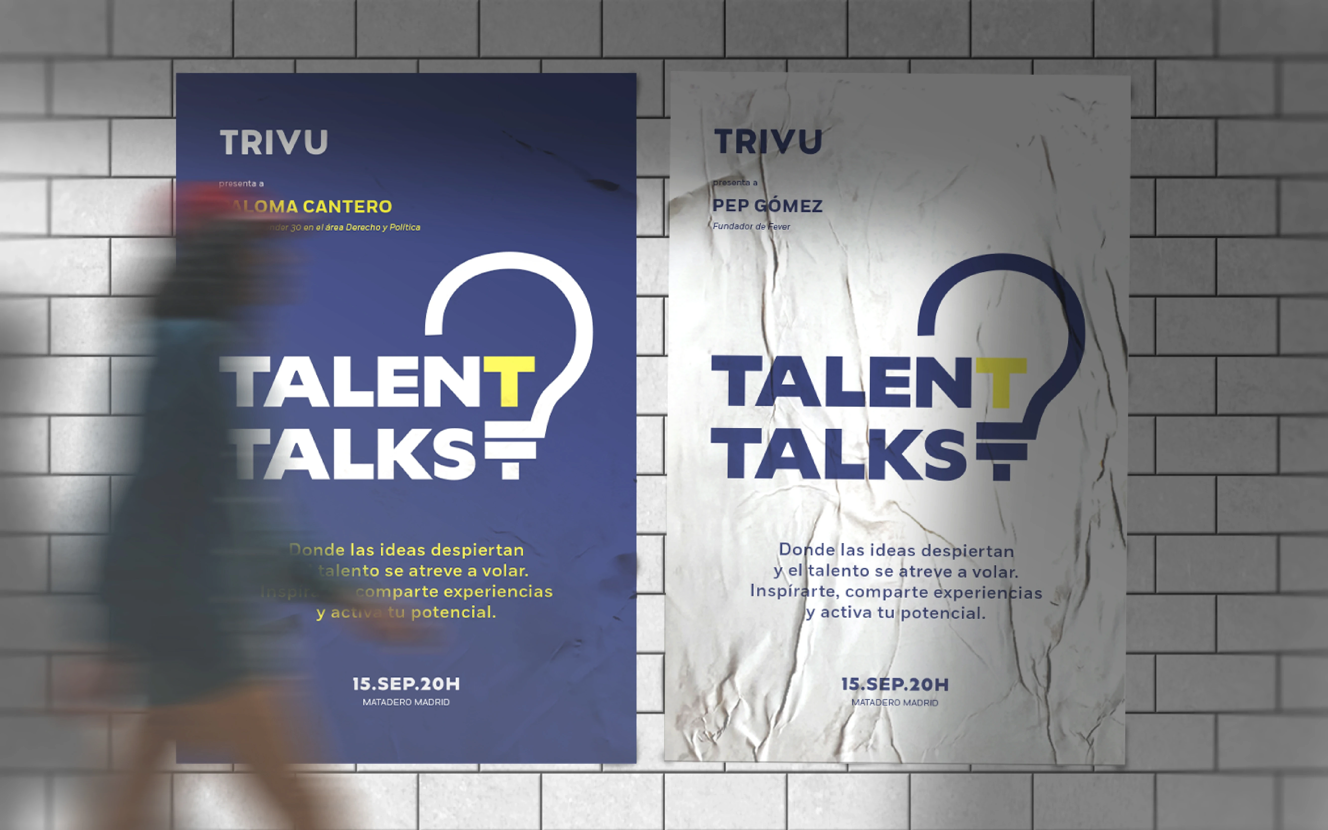 A key visual was developed for a project of inspirational talks in a TED Talk–style format, aimed at attracting and connecting with young talent within the corporate environment. The visual identity, created for Trivu, a company specialized in engagement and talent, conveys innovation, inspiration, and approachability. The graphic concept acts as a unifying element across the event’s communication, adapting to various digital and physical formats. The key visual strengthens the project’s positioning as a space for ideas, learning, and dialogue between new generations and companies committed to the future of talent.